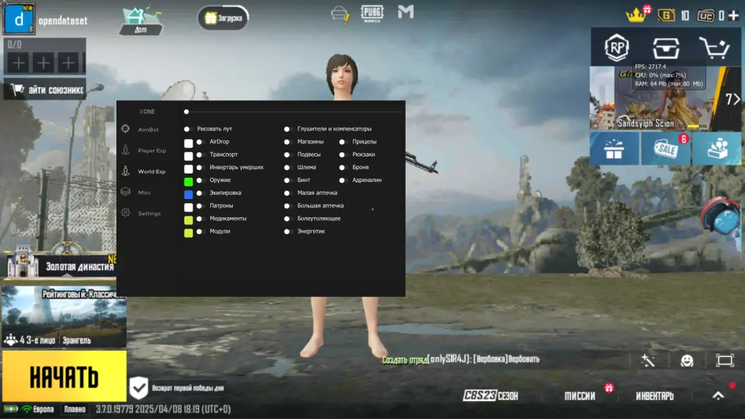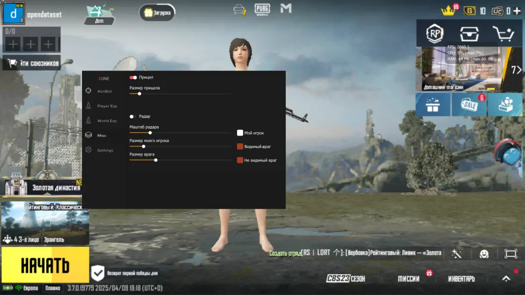 Экстернал чит для PUBG Mobile, предназначенный для использования на эмуляторе Gameloop.
